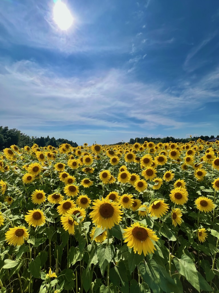 8月のある日の通勤途中、車を運転しているとひまわり畑がありました🌻何年も同じ道を通っていますが、初めてのことです。翌日、ちょっと家を早めに出てひまわり畑に寄ってみました。